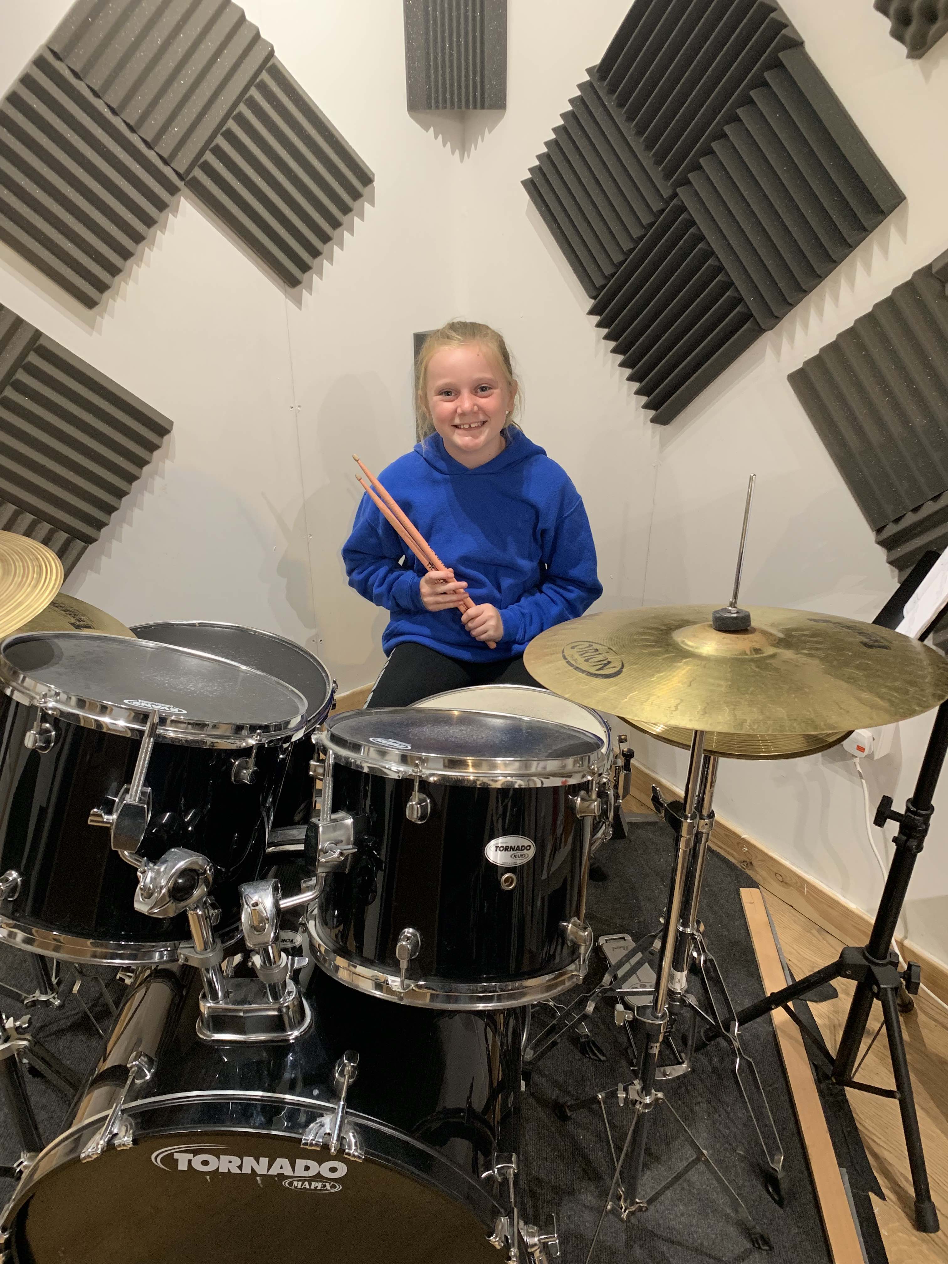 I’m in Grade 2. My exam to get into grade 3 is only in a few more months and so far I have been doing drumming for nearly 2 years now. I have had lessons with Michael from debut grade up to grade 2 and even though Michael is my Uncle he still treats me the same as all of his other students. I like playing the drums because it is very fun to learn all of the different techniques for drumming. Also, I like hearing all of the different kinds of music that I get to drum to. I got my drum kit for Christmas and I was so excited to start learning how to play it.